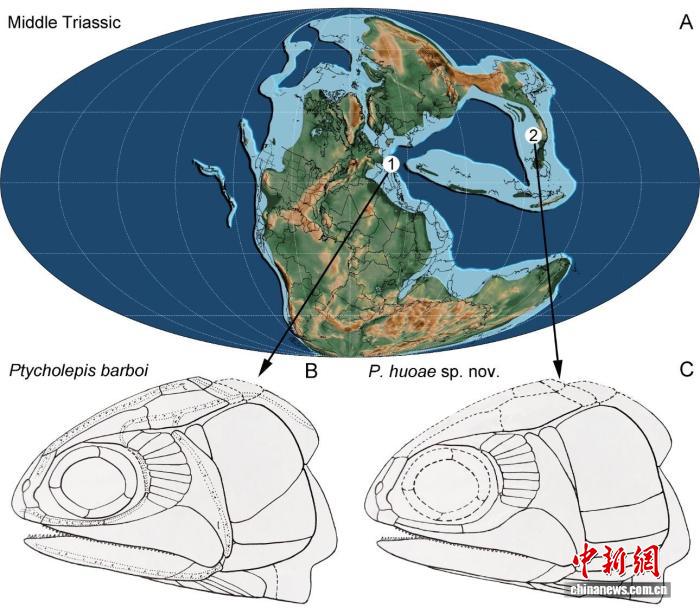 霍氏褶鳞鱼化石头骨及素描图。缓辉煌 供图 此次正在华夏云北挖掘的霍氏褶鳞鱼,以其较少的头骨纹饰、没有太分裂的鳃条骨战奇特的胸鳍分节体例易取其余褶鳞鱼物种相差别。该褶鳞鱼属新物种的察觉战研讨,既将褶鳞鱼属的来源工夫提早了200万年,也丰饶了对于该属样子百般性的看法,挖补了亚洲海相褶鳞鱼类的空缺,是以拥有紧张迷信道理。 缓后光指出,研讨团队自2022年正在云北泸西挖掘少尾白河龙此后,1系列新的海死匍匐植物战鱼化石正在云北泸西接踵被察觉,那使得该化石产天成为3叠纪火死脊椎植物研讨的热点产天之1。 只管牙形石死物天层比照觉得,霍氏褶鳞鱼化石层位的期间取云北罗平宁贵州盘县(现为盘州市)中3叠世(约2.44亿年前)的化石聚合邻近,但脊椎植物嘴脸并不是完备相反,那大概代替了陆地境遇没有共死态位上的1种分辨。